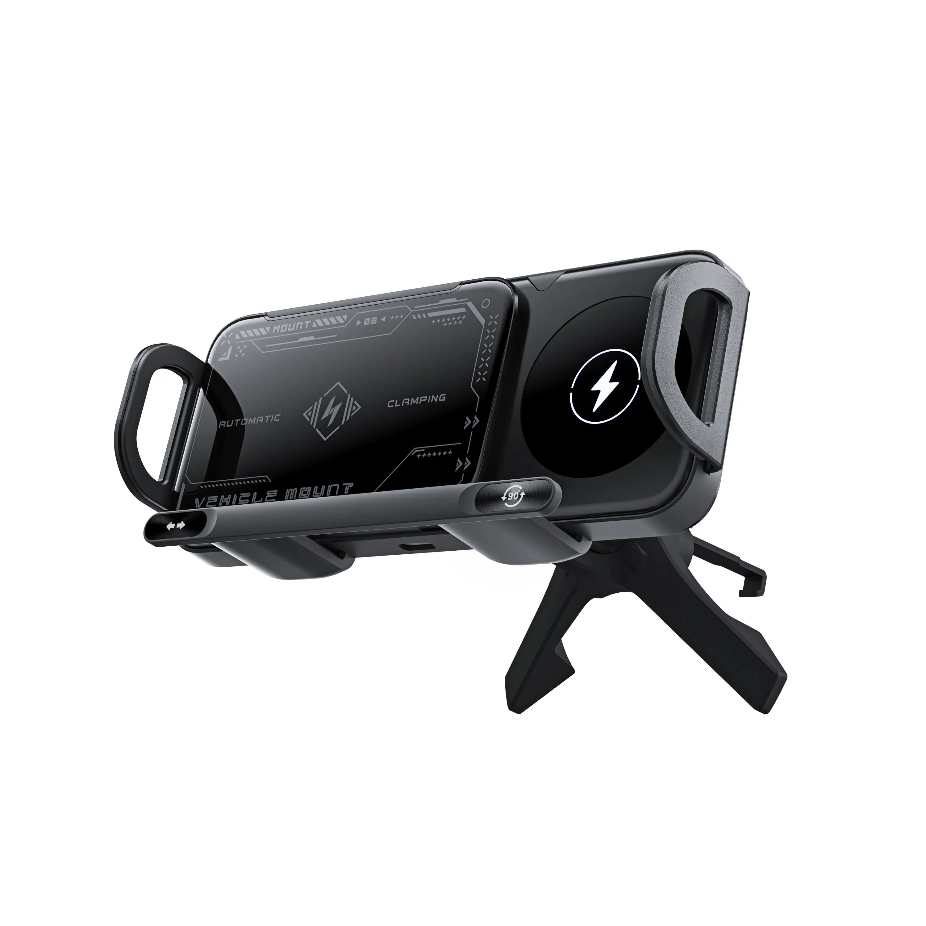 | 🔒 One-touch automatic clamping ⚡ Fast 15W wireless charging 🔩 Secure screw-lock installation 📏 Extended clamping arm for better stability 🔄 Upright to landscape rotation 🚗 Stable, hands-free driving |